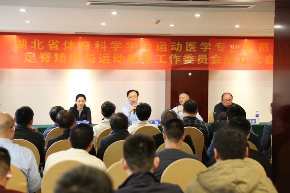 9日下午,由湖北省體育科學(xué)學(xué)會(huì)運(yùn)動(dòng)醫(yī)學(xué)專業(yè)委員會(huì)副主委郭鐵成教授主持足脊矯形與運(yùn)動(dòng)康復(fù)工作委員會(huì)第一屆選舉成立大會(huì)。
