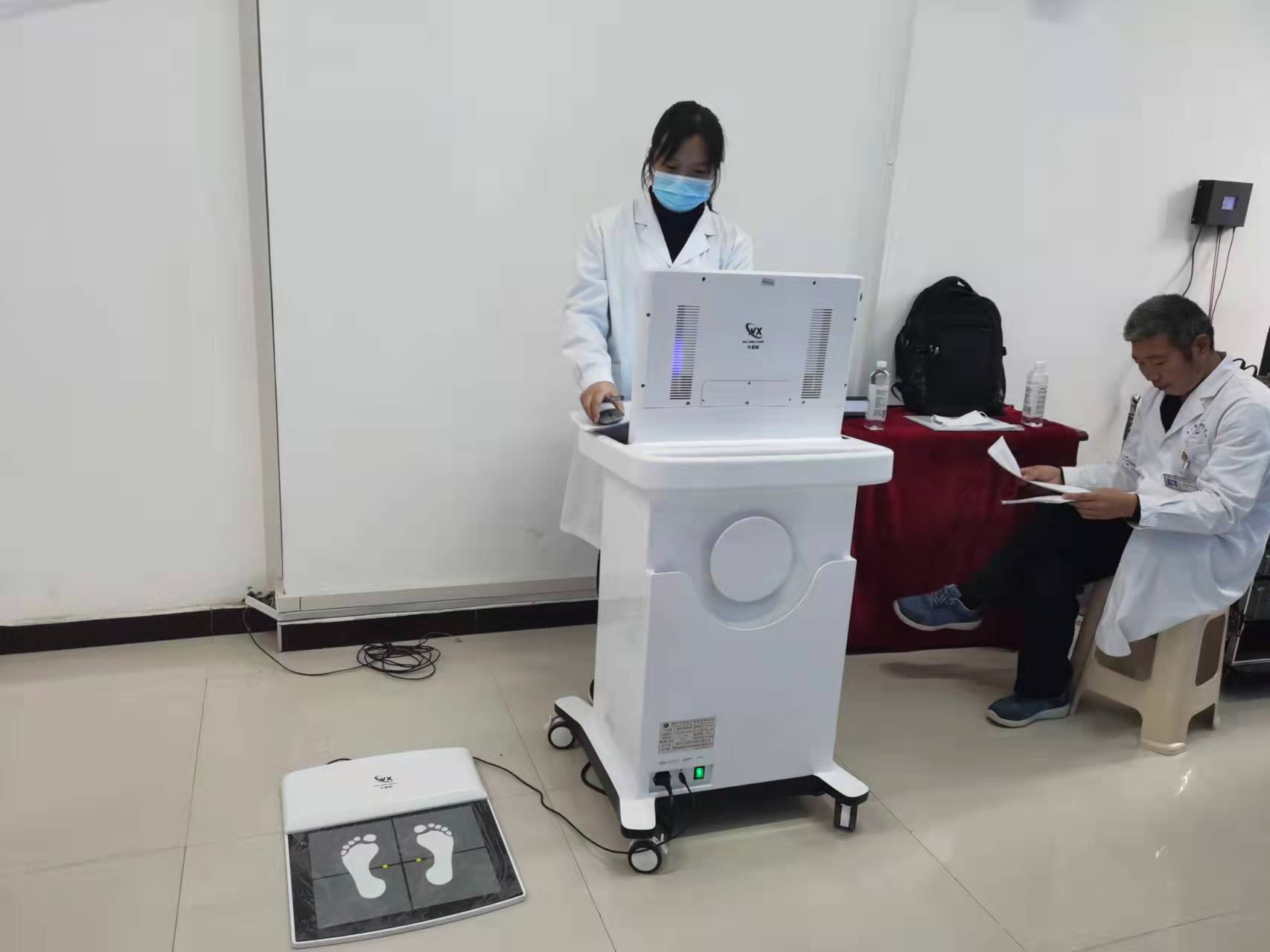 初步評估后用先進(jìn)儀器對初篩疑似學(xué)生進(jìn)行旋轉(zhuǎn)角度和足底壓力測量。
